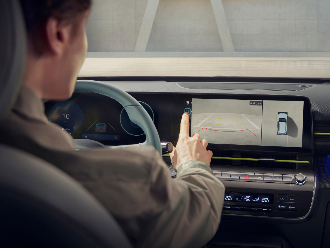 The sleek modular dashboard features two integrated displays for a high tech look: a 12.3” touch infotainment screen and a 12.3” digital cluster.