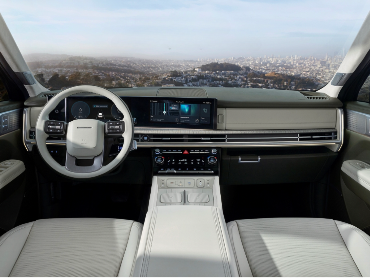 The fully foldable second and third-row seats provide class-leading interior space. The H-motif design is also applied on the interior to the dashboard and air vents. All-new Santa Fe is equipped with a wide range of high-tech features including dual 12.3" screens, dual wireless charging capability and a UV-C sterilisation tray.